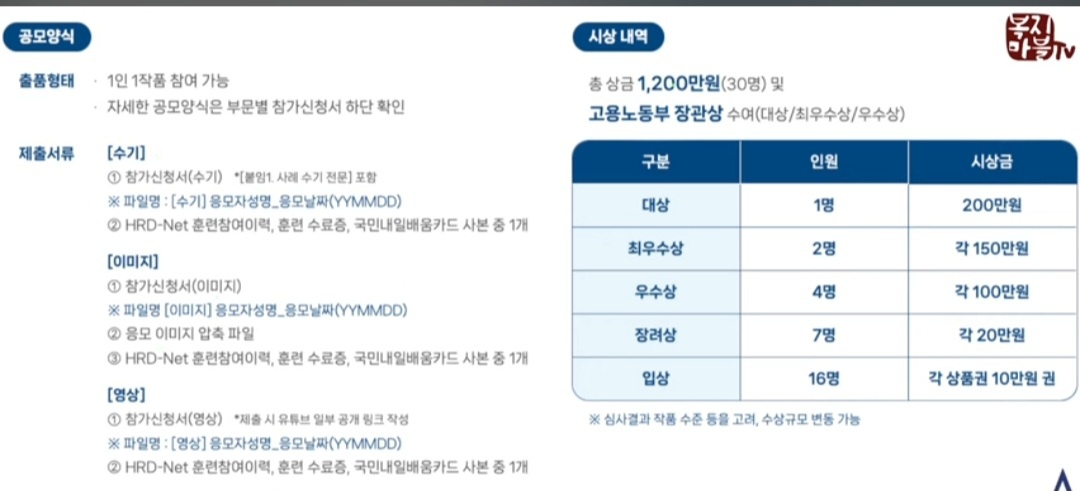 총상금 1,200만원에 고용노동부 장관상이 수여되는데요.